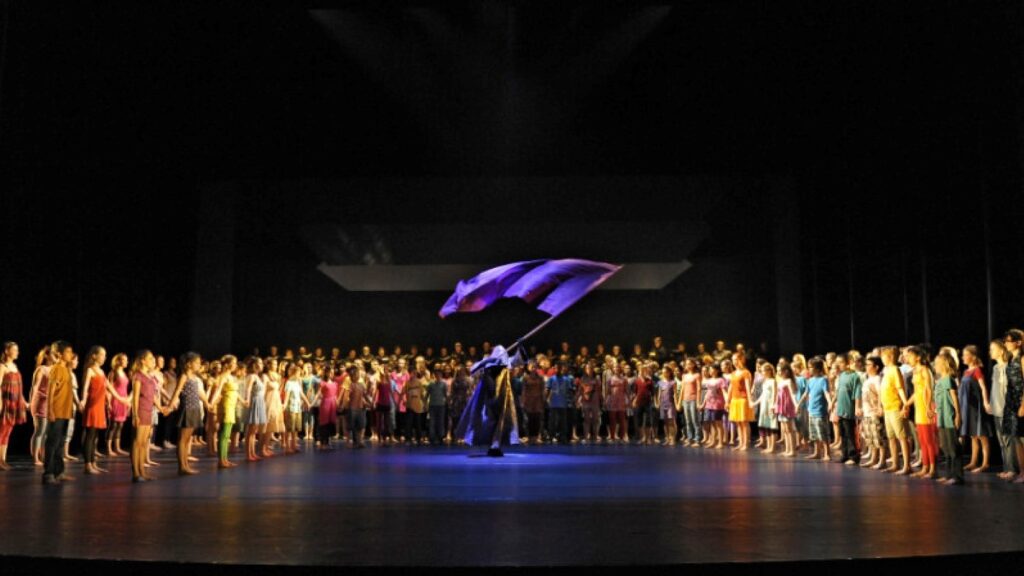 Die Lernenden der Klasse Atelier Gestaltung Medien AGM stellen sich zusammen mit je einer Schulklasse auch Zürich und Winterthur, insgesamt sind es etwa 80 Jugendliche, der Herausforderung, die Choreografie zu Igor Strawinskys «Le Sacre du printemps» seit bald einem halben Jahr einzustudieren und aufzuführen. Begleitet werden sie vom Musikkollegium Winterthur und kolumbianischen Musikstudierenden des Iberacademy Orchesters aus Medellín unter der musikalischen Leitung von Roberto Gonzáles-Monjas. Der künstlerische Leiter und Choreograf Josef Eder und sein Team unterstützen die Jugendlichen dabei, den grossen Sprung von der Schulbank auf die Bühne zu schaffen. Was als aussergewöhnlicher kreativer Auftrag im Schulalltag begonnen hat, wird zur spannenden, höchst emotionalen Entdeckungsreise. Jugendliche werden zu Performance-Tänzerinnen und -Tänzern und Schulklassen zu einem eingespielten Tanzkörper.