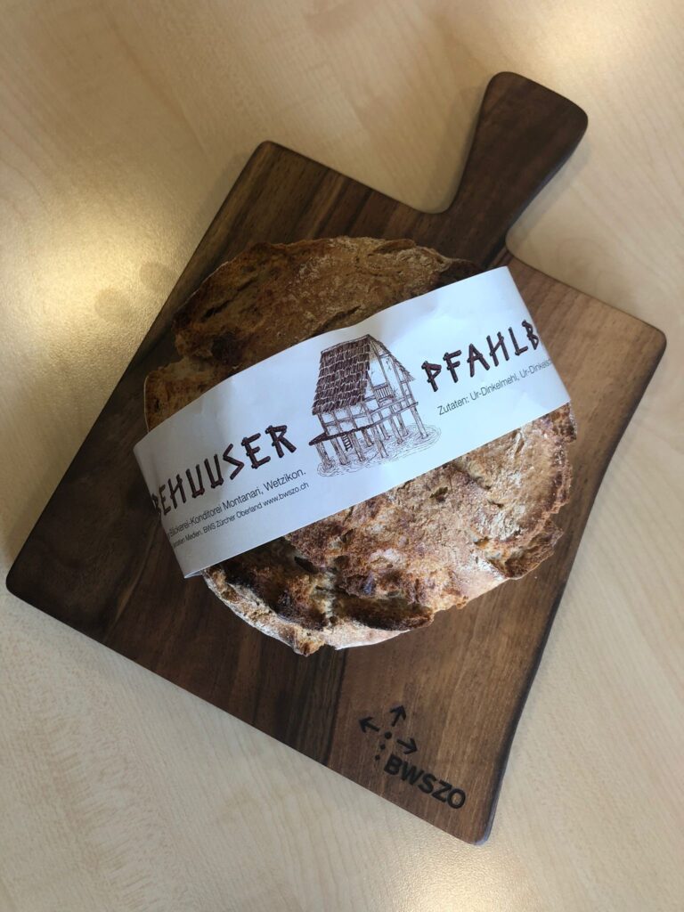 Die «Prähistorischen Pfahlbauten um die Alpen» (Schweiz, Österreich, Frankreich, Deutschland, Italien und Slowenien) zählen seit 2011 zum UNESCO-Welterbe und feiern dieses Jahr ihr 10-jähriges Jubiläum. Dazu gehören auch die 16 bekannten archäologischen Fundstellen am Greifensee und am Pfäffikersee – just in Wetzikon-Robenhausen, wo die Bäckerei Montanari seit ihrer Gründung 1935 ihren Sitz hat. Für diesen Anlass kreierte sie ihr neues, schmackhaftes „Pfahlbauerbrot“ mit Ur-Dinkelmehl, Ur-Dinkelschrot, Emmermehl, Salz, Wasser und Roggensauerteig. Der Geschäftsführer Markus Montanari nahm für diese Produktion erneut Kontakt auf mit der Klasse Atelier Gestalten Medien (AGM), und so kam es zu einer weiteren erfolgreichen Zusammenarbeit mit der BWSZO.